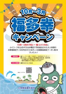 日間賀島観光協会では特定の予約条件を満たし、多幸の日・福の日にご宿泊されたお客様に、お一人様500円分の【ひまポン】日間賀島限定クーポンをプレゼントする『福多幸キャンペーン参加施設』を開催中!! 民宿まるよでも「ひまポンがもらえるお店」「ひまポンが使えるお店」として参加しております。 是非、当館ご宿泊の上、お得なクーポンで日間賀島をお楽しみください。